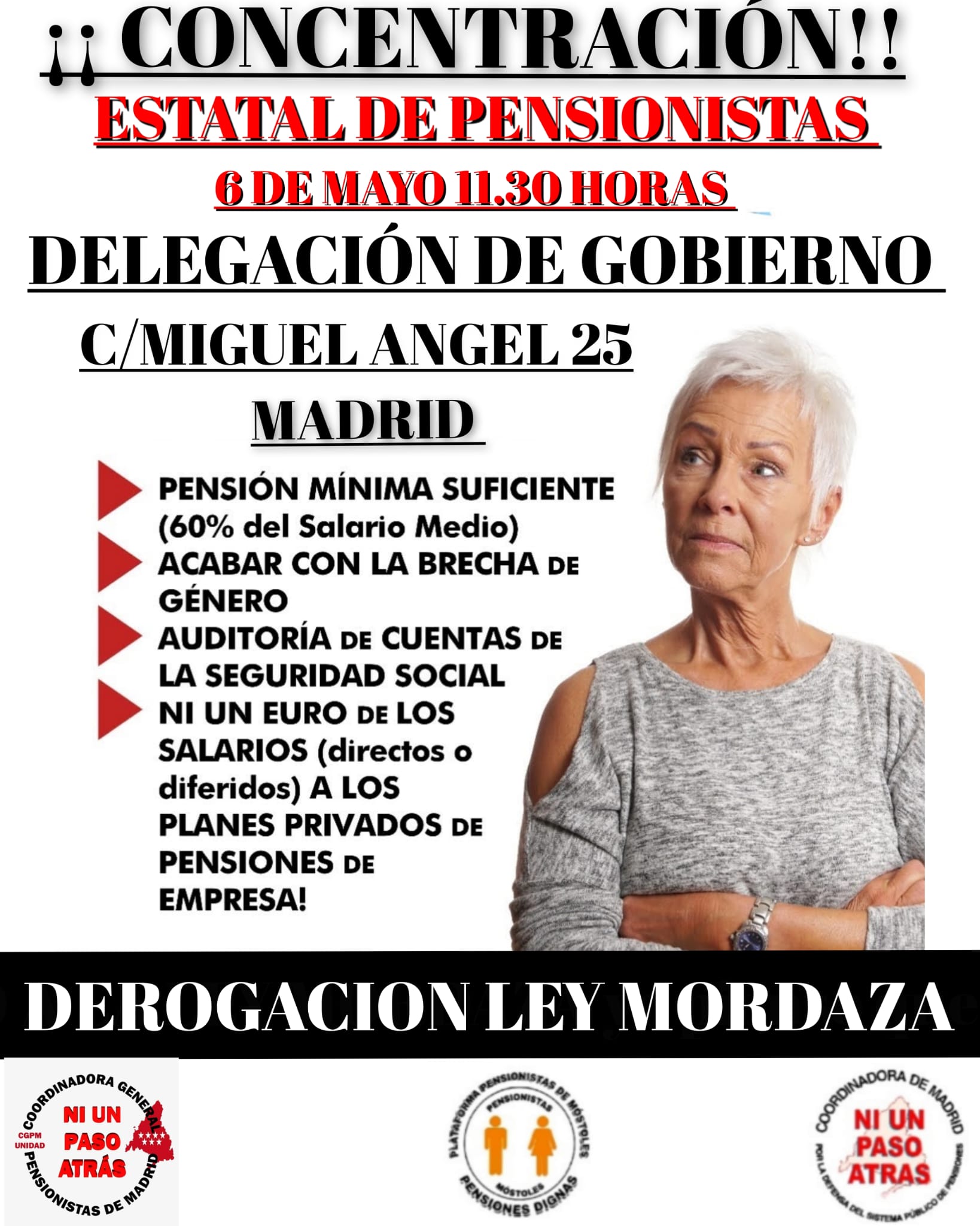 Exigimos el levantamiento del expediente sancionador aplicando la Ley Mordaza que el D. Del gobierno ha abierto a dos pensionistas de Alcalá. Mañana puede ser cualquiera.