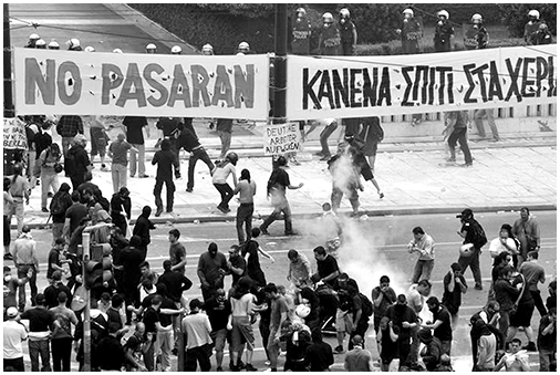 La existencia de organizaciones de izquierda radical pero sobre todo de organizaciones de un amplio sentimiento anticapitalista con características inequívocamente autónomas, autiautoritaristas y anarquistas constituyen totalmente un gancho para el cuestionamiento social, a pesar de la gran cantidad de problemas y contradicciones existentes, sobre todo provenientes del sectarismo de la izquierda radical y de la fetichización de los choques con las fuerzas policiales en el caso de los anarquistas. Si acaso diciembre de 2008 fue una insurrección juvenil donde los movimientos anticapitalistas y anarquistas más amplios pusieron su sello, es momento de distanciarse de sí mismo y de su propia “convencionalidad”, empezando primero por ampliar su referencia social más allá de la gente joven. Seguro que habrá montones de oportunidades de dar ese paso en breve, sea mediante los procesos iniciados en la plaza Syntagma, o las luchas locales y parciales así como resistiendo ante la privatización del patrimonio público.