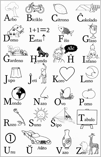 Unas pequeñas pinceladas: siempre se lee como se escribe y se escribe como se lee. Cada letra es un sonido y cada sonido es una letra. El verbo es muy simple y se compone de una raíz y unas terminaciones que señalan lo que sucede en el presente mediante la terminación -as, el pasado mediante la terminación -is, el futuro mediante la terminación -os. Una misma raíz puede ser usada para crear múltiples categorías; así: caballo: “ĉevalo”, yegua: “ĉevalino”, potro “ĉevalido”, equino: “ĉevala”, establo: “ĉevalejo”, siendo -o la terminación universal para los nombres, -a para los adjetivos, -in para hacer la forma femenina, -id el descendiente, -ej el lugar propio de lo que indica la raíz, etc.