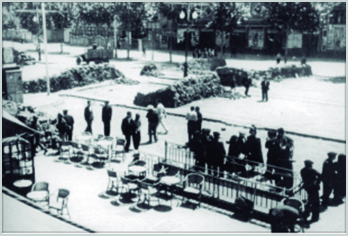Barricadas al comienzo de las Ramblas