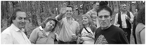 Raï tuvo muchos apodos a lo largo de los años en los que compartimos luchas: “papilomas”, “tigre”, “chamán”, etc. Anteriormente en su juventud, allá en Soria en San Esteban de Gormaz, le conocían por “zorro”. También le llamamos “la aparición”; este apodo se lo puso el también añorado Julián allá por año 2004. De cara a las elecciones sindicales de ese año nos hicimos la foto de grupo ante la estación de El Lago, estación peculiar donde las haya y una de las más guapas de Metro, sin duda. Las fotos las hicimos en dos veces una a mediodía a la gente que trabajaba de tarde y otra a las tres de la tarde con la gente de la mañana. Un grupo de pie y otro agachado, Raï estaba en el grupo de los agachados y por tanto había que ponerlo en la foto de conjunto delante del grupo que había posado de pie. Las fotos de ambos grupos las había tirado Lozano, Perisito que le dicen en su Priego natal, e incluso había hecho un montaje a todo color que estaba muy bien. El caso es que Julián afirmaba que el cartel debía potenciar la colectividad del sindicato y que por ello debía ir en rojo y negro y no a color… y cuando Julián afirmaba una cosa de esa manera, además sostenía que todo la foto del cartel iría en blanco y negro excepto la bandera del sindicato. Al final todos nos rendimos ante la tozudez de Julián y dimos el visto bueno. El problema vino al superponer el grupo de Raï, pues sus cuatro pelos teñidos dejaban pasar mucha luz y cuando se tomó su foto no había nadie detrás. De nada sirvió decirle a Julián que nadie se iba a fijar en eso, que estaba bien así, que no importaba. Julián cada vez que daba por terminado el montaje se fijaba en Raï y exclamaba: “¡¡la aparición!! ya está aquí la aparición”. Y vuelta a comenzar los retoques para que no se notase su pelo en el montaje. Julián agrandaba la cabeza de Raï hasta el máximo que le permitía el ordenador y trabajaba casi pelo a pelo el corte de la foto, luchando contra una realidad que se seguía imponiendo a pesar de su trabajo y paciencia. Al final optó por difuminar un poquito la foto de grupo de los agachados, lo que le llevo a renglón seguido a difuminar también la de los de pie “porque no puede hacerse sólo a una parte, la foto es un todo y lo realmente importante es la bandera, es decir lo que representa”.