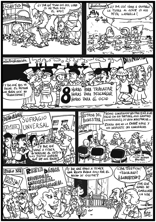 Porque, al final, lo que puede ser una magnifica herramienta para el día de hoy no debe hacernos olvidar que el problema es más profundo: es el capitalismo, y no sólo el reparto de parte de la riqueza expropiada por los capitalistas. Para solucionar el problema de fondo, pues, se imponen soluciones más profundas y globales: iniciar el proceso de salida del capitalismo histórico con una dinámica de avance sobre la producción, y no sólo sobre la distribución. Autogestión y socialización de la economía, y gestión comunal-comunitaria de los servicios básicos y comunes, superando al mercado privado y al estatismo estrecho. Eso implica empoderamiento de las clases subalternas, construcción de una red de iniciativas y contrapoderes populares capaz de expropiar, por fin, a los expropiadores que nos han hurtado la dirección y propiedad de la riqueza social que producimos entre todas y todos. La Renta Básica puede liberar tiempos y energías para ello, combinada con la construcción popular, inaugurando un nuevo equilibrio más favorable en el campo de batalla entre clases, o ser un nuevo obstáculo, en la versión que empieza a pergeñar la oligarquía, como versión postmoderna, cicatera y condicionada, del “pan y circo” romano para las zonas centrales del sistema.