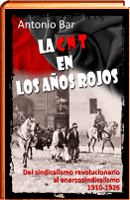 ANTONIO BAR: LA CNT EN LOS AÑOS ROJOS (1910-1926)Densísimo estudio [más de 800 páginas en papel y más de 1300 citas] del contenido ideológico y orgánico de la CNT en el período que va desde su fundación, a finales de 1910, hasta la mitad de la dictadura de Primo de Rivera [justo antes den lacimiento de la FAI]. Extensamente documentado, incluye los nombres de todos los Secretarios de la Organización en el período estudiado. Libro referencial para el estudio de la CNT clásica.