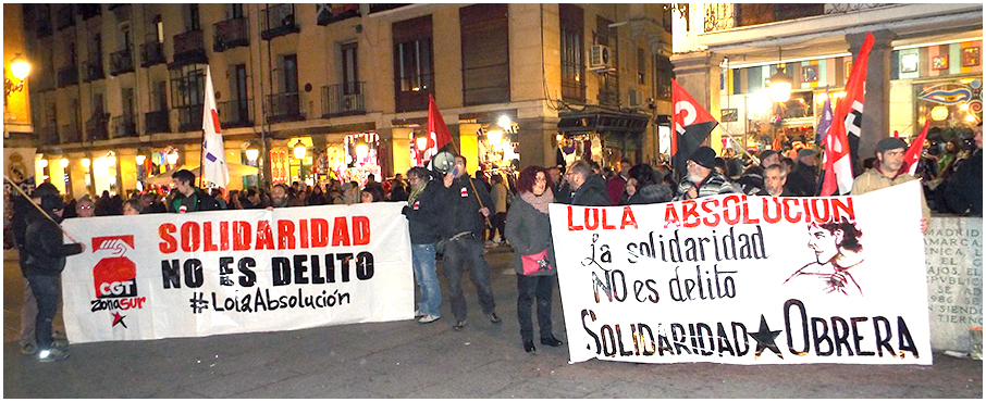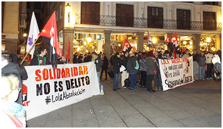 Lola Gutiérrez, delegada sindical de CGT-Catalunya y activista social, juzgada en Grecia con una petición de 5 a 10 años de prisión por intentar ayudar a un menor Kurdo a reunirse con su familia. La solidaridad con los más desfavorecidos, quieren que sea delito en esta Unión Europea deshumanizada y criminal que pone todos los impedimentos posibles para que los refugiados lleguen a “la tierra de las libertades” propiciando todo tipo de atropellos, injusticias en las fronteras externalizadas (Libia, Turquía, Marruecos…) e incluso la muerte y desaparición en el Mediterráneo.