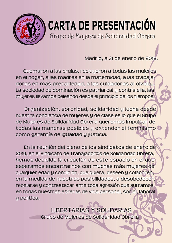 El pasado mes de enero se constituyó el Grupo de Mujeres de Solidaridad Obrera.