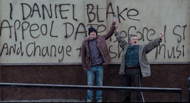 Como si del cogito ergo sum cartesiano se tratase, el título “Yo, Daniel Blake” es reflejo del diluir identitario al que venimos asistiendo desde la entrada de la Modernidad. Parece que en los años que llevamos, de la misma época que había afirmado el principio –y su exceso- de individualismo, algo se ha ido olvidando por el camino: el respeto y la igualdad de los seres humanos. El protagonista Daniel Blake, grafitea y afirma en los muros de la seguridad social una máxima que sentencia los límites del individuo: “Yo, Daniel Blake”. Hasta aquí yo, el Estado debería ser capaz de valorar a los individuos por lo que son y no por lo que tienen.