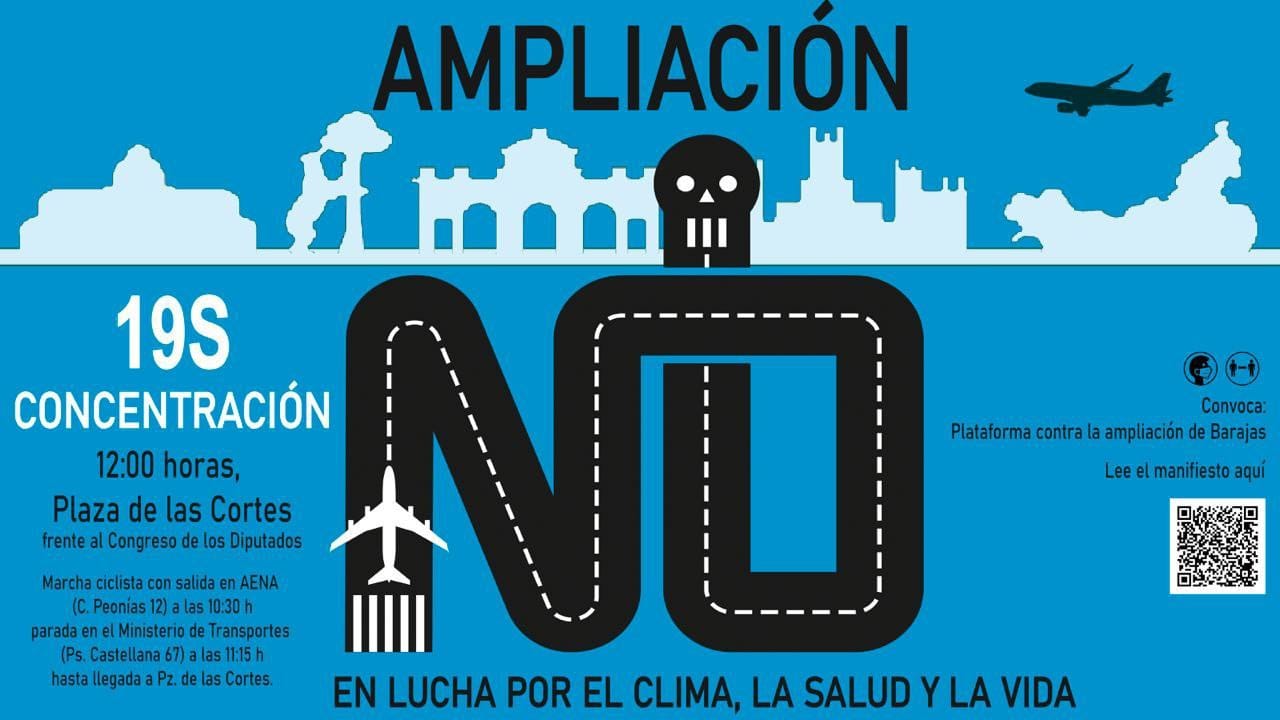 - El próximo domingo 19 de septiembre, en Barcelona, Madrid y Palma habrá concentraciones simultáneas en contra de los proyectos de ampliación de los aeropuertos de Madrid, Barcelona, Girona, Reus y Palma.