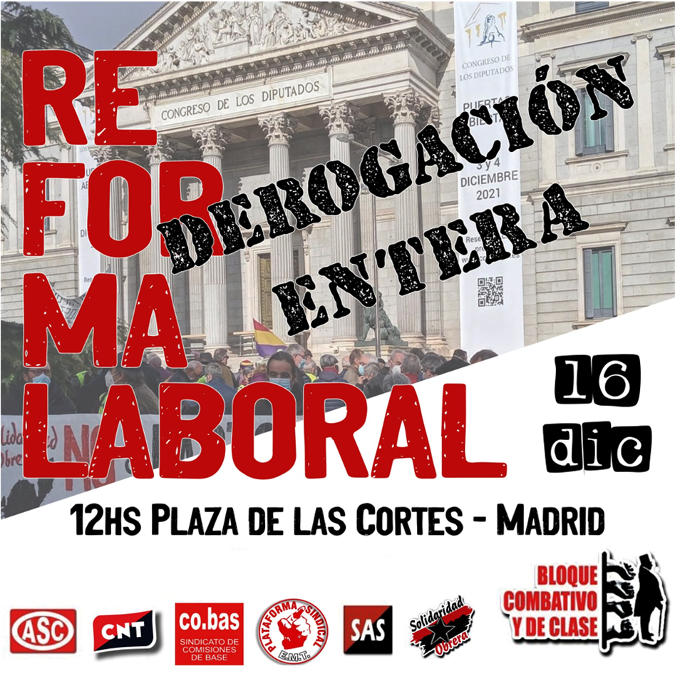 El próximo jueves, 16 de diciembre, el Bloque Combativo y de Clase llama a toda la clase obrera, en activo o desempleada, a la juventud y a las pensionistas a IR A LA CONCENTRACIÓN QUE HEMOS CONVOCADO FRENTE AL CONGRESO A LAS 12:00H