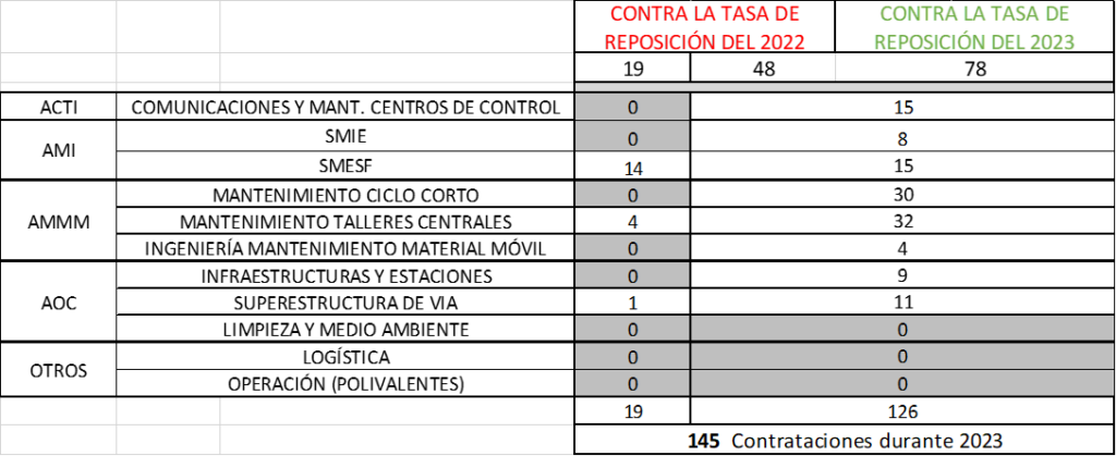 Esta sería la posible distribución final de los 145 trabajadores restantes de las bolsas de Oficio, con esto se daría por finalizado el ingreso del los 380 (30 + 350) durante el 2023, los 19 + 48 son los restantes de la tasa de reposición del 2022 y 78 pendiente de la del 2023 que ya nos ha comunicado la empresa que será de 332 (120 %) y que será solicitada esta semana.